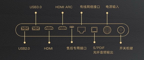 在接口上,慧示J1配置了1個USB2.0接口、1個USB3.0接口、2個HDMI接口,其中1個支持ARC。末端還附有一個開關(guān)機按鍵。