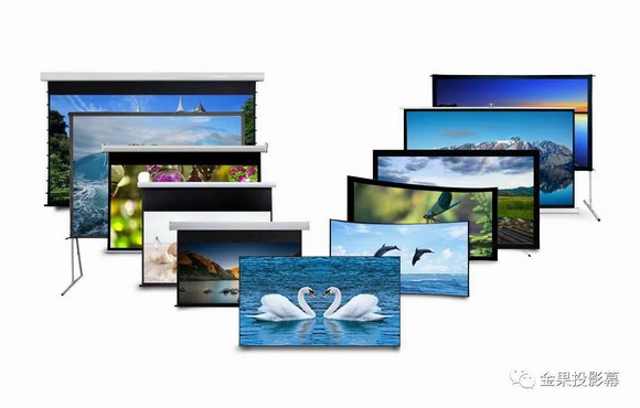 金果投影幕所擁有的的產品眾多,如手動幕、電動幕、支架幕、畫框幕、桌幕、快速折疊幕、弧形幕、超大工程幕等系列幾百個品種?蛻粝胍裁串a品,我們都能做什么產品,如100寸等大尺寸的投影幕。除此之外還可搭配多種投影幕布材料。