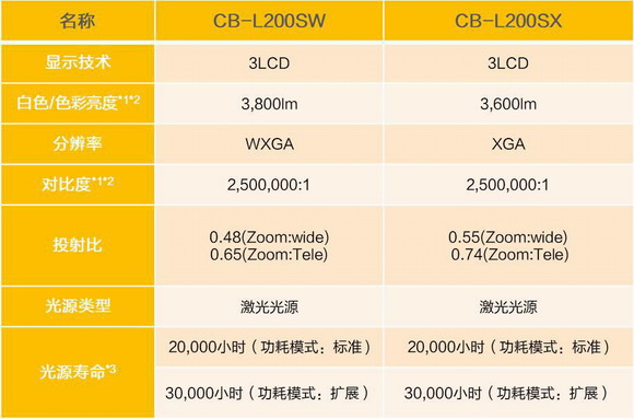 *3 上述時(shí)間為非承諾保修時(shí)間。激光光源亮度將隨使用時(shí)間的增加而逐漸降低。激光光源實(shí)際使用壽命受使用模式、環(huán)境條件、用戶使用習(xí)慣等因素影響會(huì)有很大差別。投影機(jī)在低亮度模式下使用,激光光源使用壽命會(huì)得到有效延長
