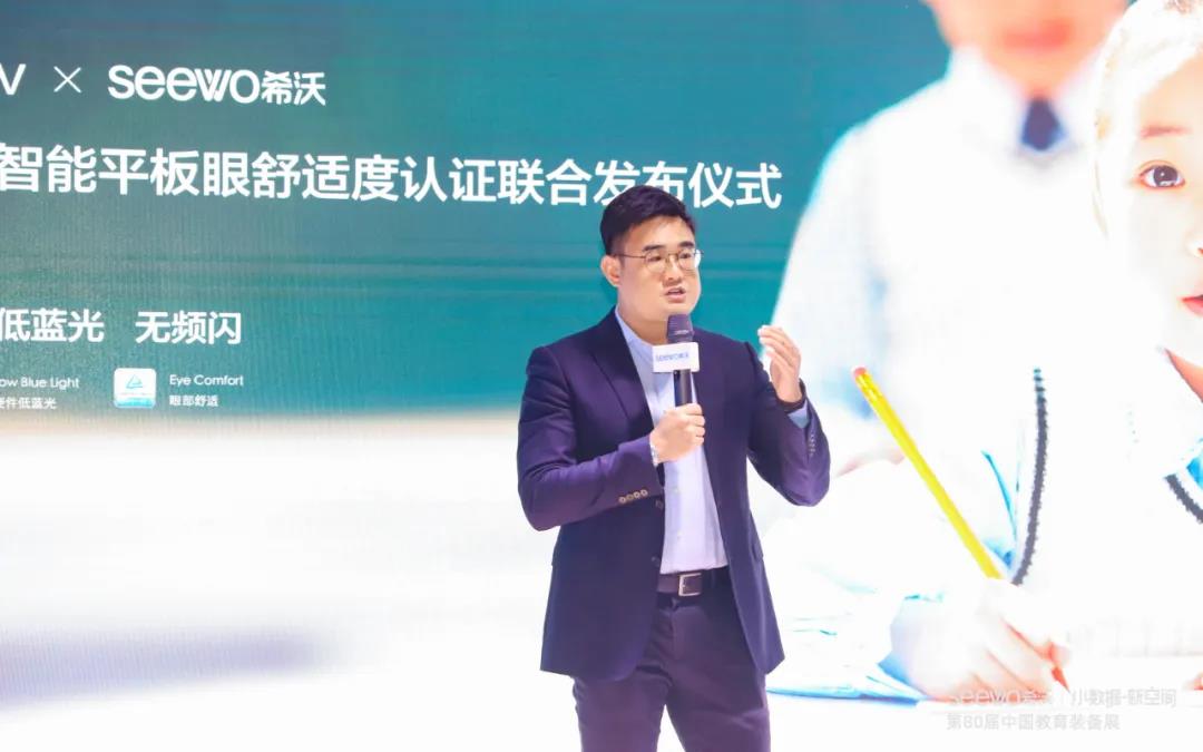 健康先行,希沃聯(lián)合德國萊茵TÜV舉行眼部舒適度認證儀式