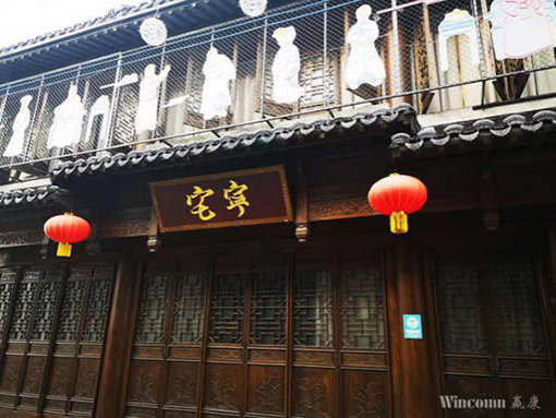 《南京喜事》的演出場所位于南京熙南里,一座挑高10米的宅院,占地超千平米的仿清南京城的建筑中。為真實(shí)還原古代南京大家族的生活場景,制作團(tuán)隊(duì)耗費(fèi)5078小時監(jiān)工制作,精心打磨了827樣道具,以及21間國風(fēng)演出場地。