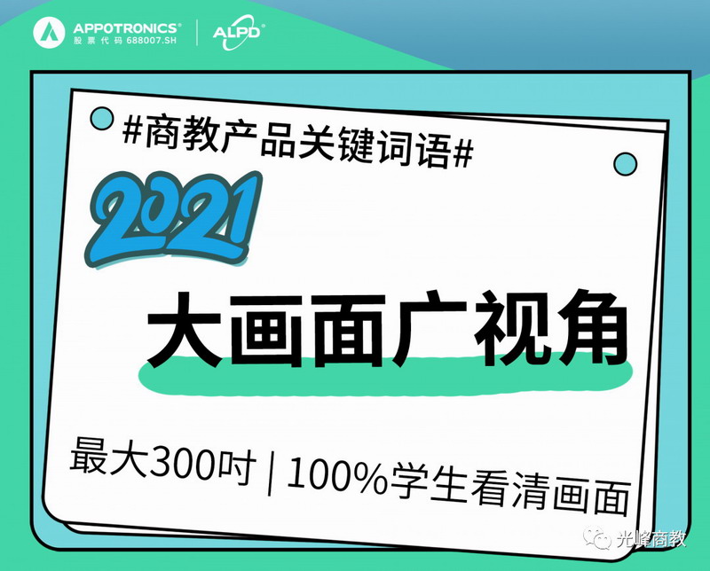 2021產(chǎn)品關(guān)鍵詞,是光峰商教產(chǎn)品升級迭代規(guī)劃藍圖,變局來臨之時,順應(yīng)教育信息化發(fā)展趨勢,向著高清、高亮、大畫面廣視角、護眼發(fā)展,更大力度推動改革創(chuàng)新,以務(wù)實創(chuàng)新的心態(tài)、勇爭一流的決心,讓我們?nèi)Ρ寂埽?021未來可期!