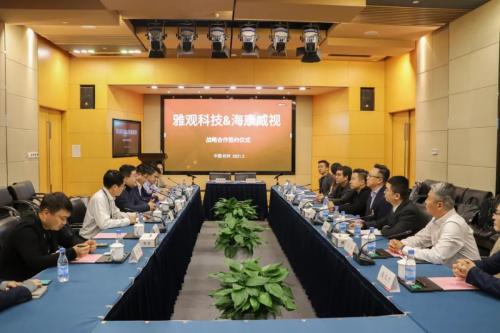 當(dāng)天上午,雅觀科技CEO顧志誠、聯(lián)合創(chuàng)始人田陌晨、雅觀智能總裁王澤嘉、CIO高健倫一行,來到杭州市濱江區(qū)海康威視總部,海康威視高級副總裁徐習(xí)明、副總裁陳繼國、智慧事業(yè)部總經(jīng)理胡明輝以及智慧建筑的行業(yè)和銷售相關(guān)負(fù)責(zé)人接待了顧志誠一行。