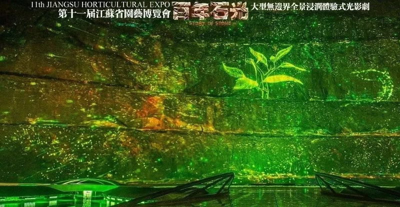 在第十一屆江蘇省園藝博覽會開幕式上,以南京湯山崖壁為創作背景的全景沉浸光影秀《百年石光》在崖壁劇場同步上演。該演出以山為幕,以崖壁為劇院,通過舞臺情景變化來詮釋時代變遷。