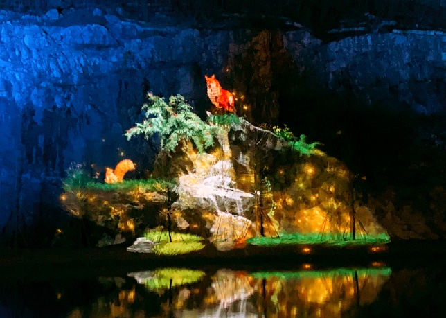 該景區(qū)的主要亮點是對江蘇 13 個城市傳統(tǒng)園林(包括南京園、蘇州園、無錫園和泰州園)的再造,恰如其分地展示了江蘇聞名天下的園林文化和造景水平。夜幕降臨后,引人入勝的光影秀讓景區(qū)沐浴在藍、紅、黃三色燈光中?埔旵hristie的合作伙伴中清映業(yè)集團為這場光影秀安裝了四臺科視Christie DWU2022-HS 1DLP® 激光投影機,在山坡上投影出的絕美畫面。