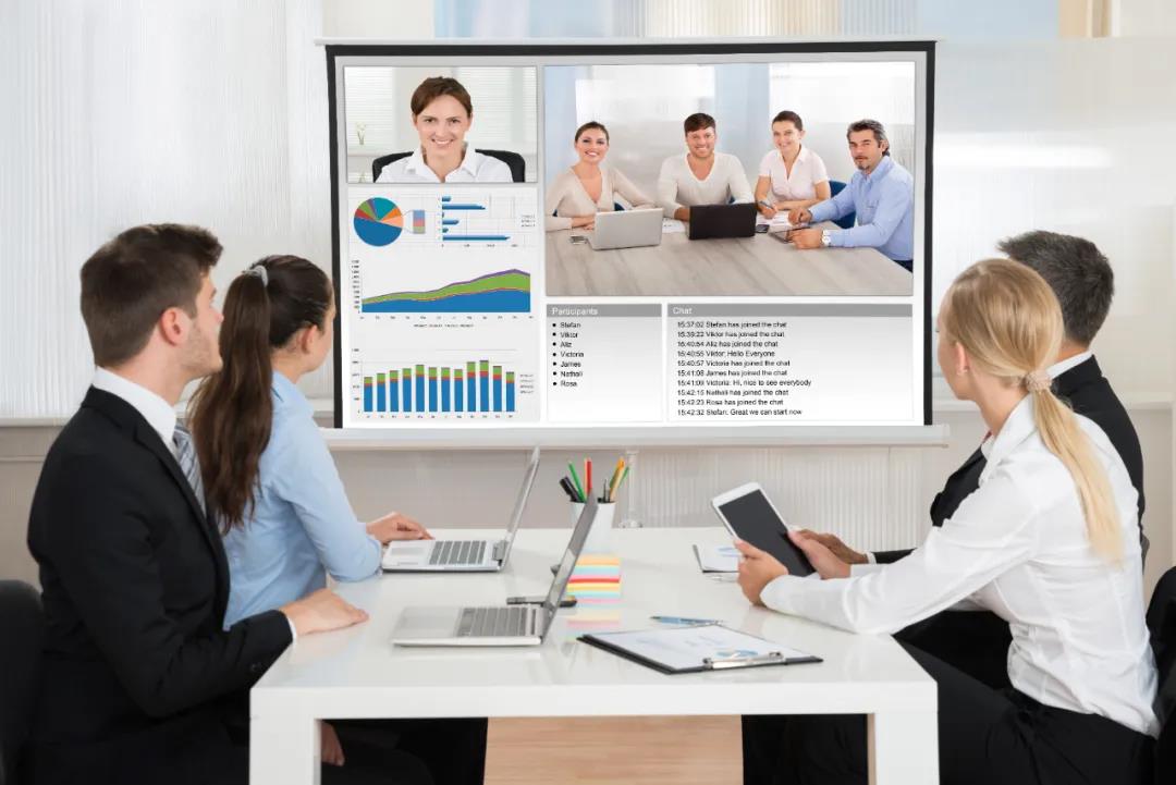 混合會議(hybridconferences)是指同時包含線下現場會議室及線上網絡部分的會議模式。會議的線下部分即是傳統的會議室場景,會議的線上部分則能帶來“隨時、隨地”,足不出戶就仿佛親臨現場的交互體驗。因此,在新的混合式會議模式中,互動是關鍵。因而公司關注的技術性問題,包括既有的音視頻會議系統、內容共享、會議室調度、無線演示和協作,混合式會議裝置還側重于智能視音頻集成解決方案,無觸碰式等,特別在新冠疫情期間施行的防范保護措施等,確保在每個空間為每個參與者、管理人員等提供一致而優質的音視頻會議體驗。