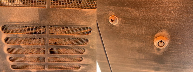 通風(fēng)導(dǎo)致大量水汽侵襲,令箱體部件、過濾網(wǎng)生銹腐蝕
