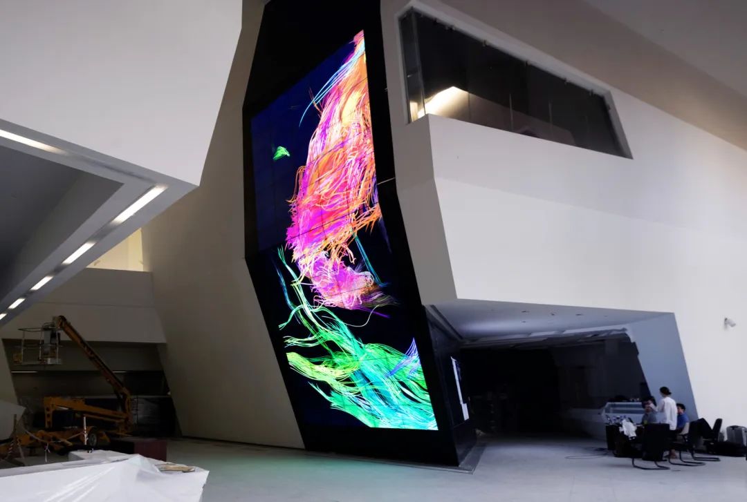 在中庭2層的視頻墻上,FIELD(藝術設計公司)被邀請用藝術隱喻表達KAPSARC的目標和愿景——共同合作,探索自然。