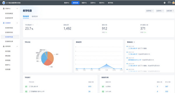 數據統計,除常態化支持全縣教師教學之外,已累計完成4218次線上集體研討備課、886場線上線下混合教研,建設校本資源庫資源達5.5萬份。