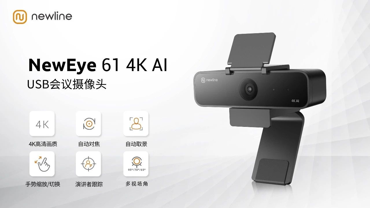 其中,NewEye 61 AI 會議攝像頭則以其超高分辨率和AI畫面優化技術,為遠程會議帶來更加真實、清晰的視覺體驗。三種AI模式(縮放、自動取景、演講者跟蹤)可根據會議需求輕松切換,手勢控制功能更是讓操作更加便捷。高清鏡頭快速精準對焦,人臉捕捉無遺漏,確保每位參會者都能清晰出現在畫面中。