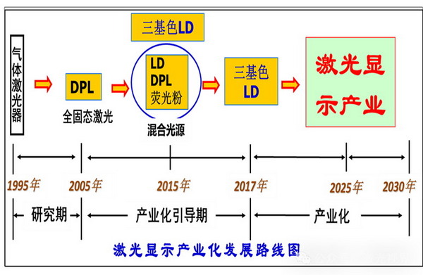 在2012年國(guó)家科技部發(fā)布的《新型顯示科技發(fā)展“十二五”專項(xiàng)規(guī)劃》中,明確定義了激光顯示產(chǎn)業(yè)戰(zhàn)略地位,大力發(fā)展激光顯示和3D顯示為代表的下一代顯示技術(shù)。針對(duì)我國(guó)激光顯示產(chǎn)業(yè)的發(fā)展提出了明確的目標(biāo):年產(chǎn)值達(dá)100億元,影院系統(tǒng)占有率達(dá)30%。