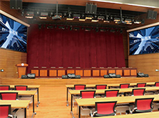本項目是用超短焦激光投影機在室內提供的大屏解決方案,是一款性價比很高的大屏。該方案采用了2臺國畫LP40US商用激光投影機在抗光幕上進行融合,畫面尺寸達4m*1.4m。從畫面呈現看,室內看亮度,顏色不輸于液晶顯示屏,畫面亮度適中,不刺眼,長時間觀看不會疲勞,而且采用了抗光幕方案,安裝起來節省空間,觀察屏幕者可以離屏幕很近距離觀測畫面,特別適用于室內監控大屏。從成本看,整個方案成本遠低于液晶方案,能做到同尺寸液晶的十分之一不到。